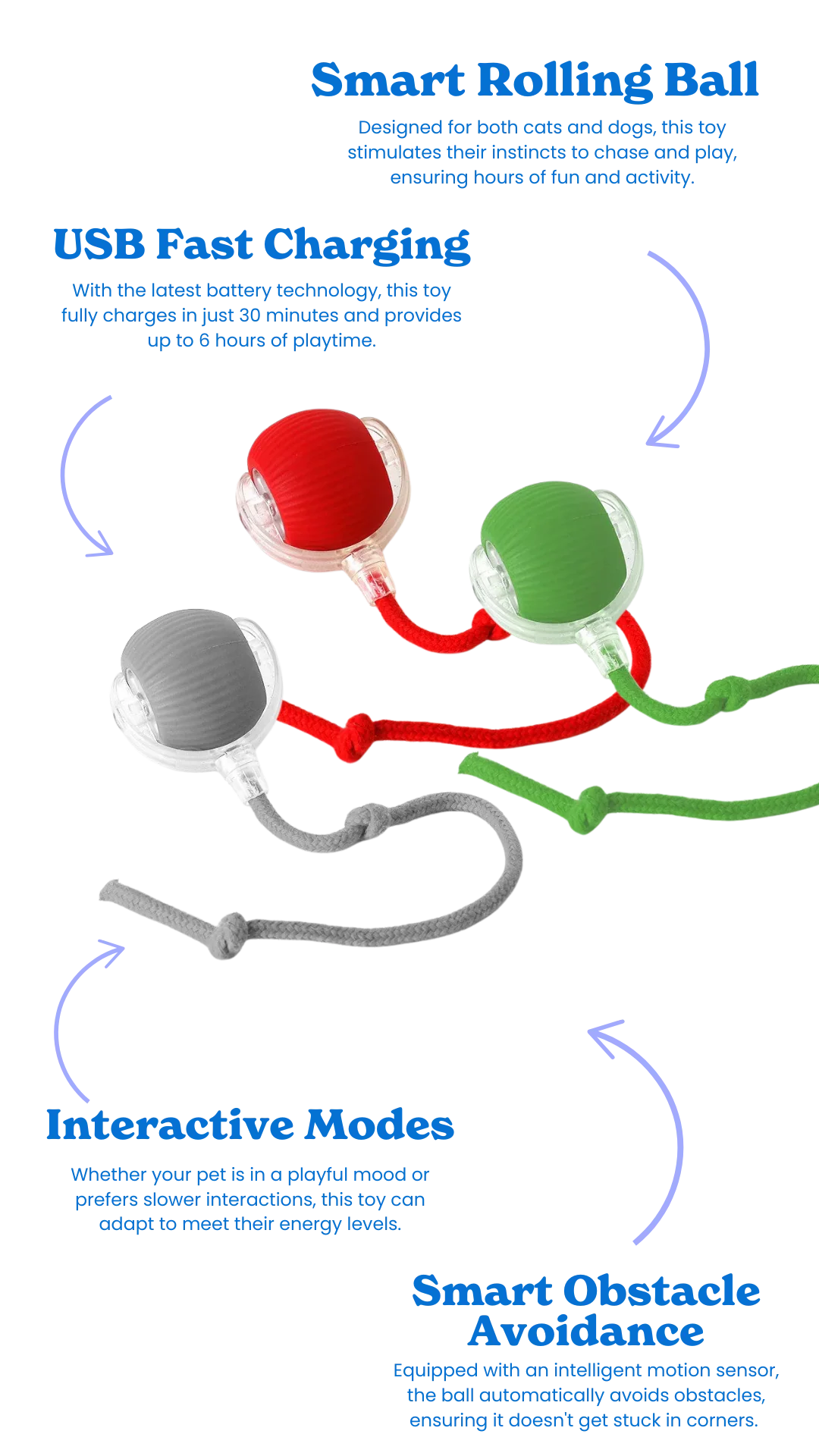 The Bella & Butch Electric Interactive Rolling Ball™ is an interactive toy designed to stimulate your dog’s natural instincts for chasing and fetching. It features dynamic movements and a tail attachment for added excitement, keeping your dog engaged and entertained.
