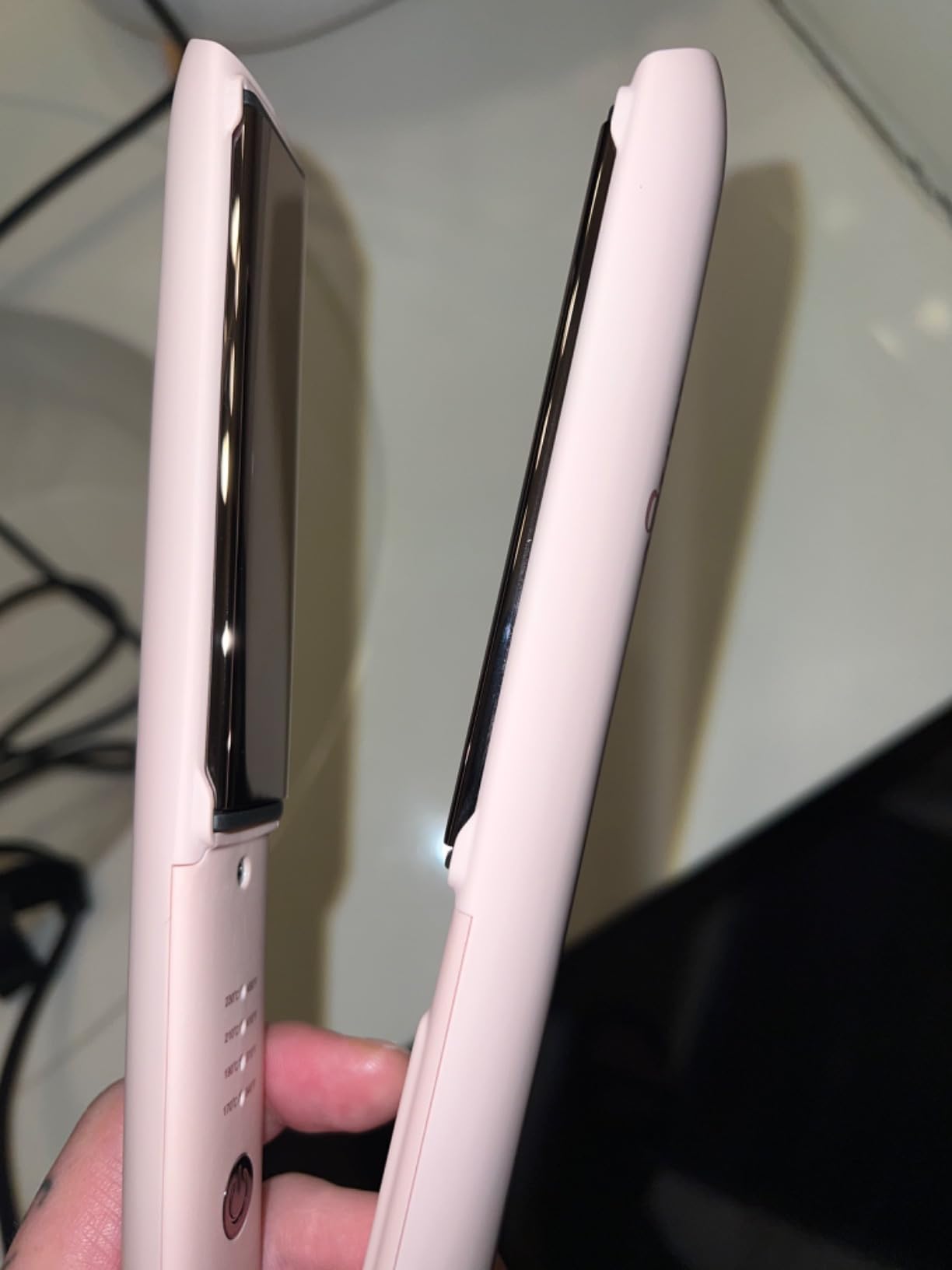 Floating titanium plates—smoother styling with less hair tug than fixed-plate alternatives.